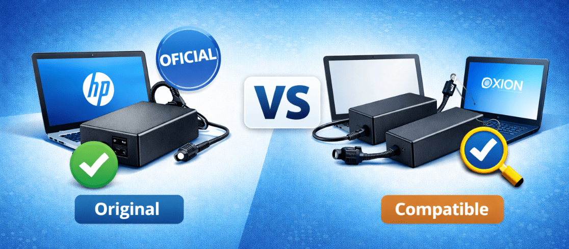 Un cargador compatible es un adaptador diseñado para funcionar con determinados modelos de laptop, pero que no necesariamente es fabricado por la marca del equipo.