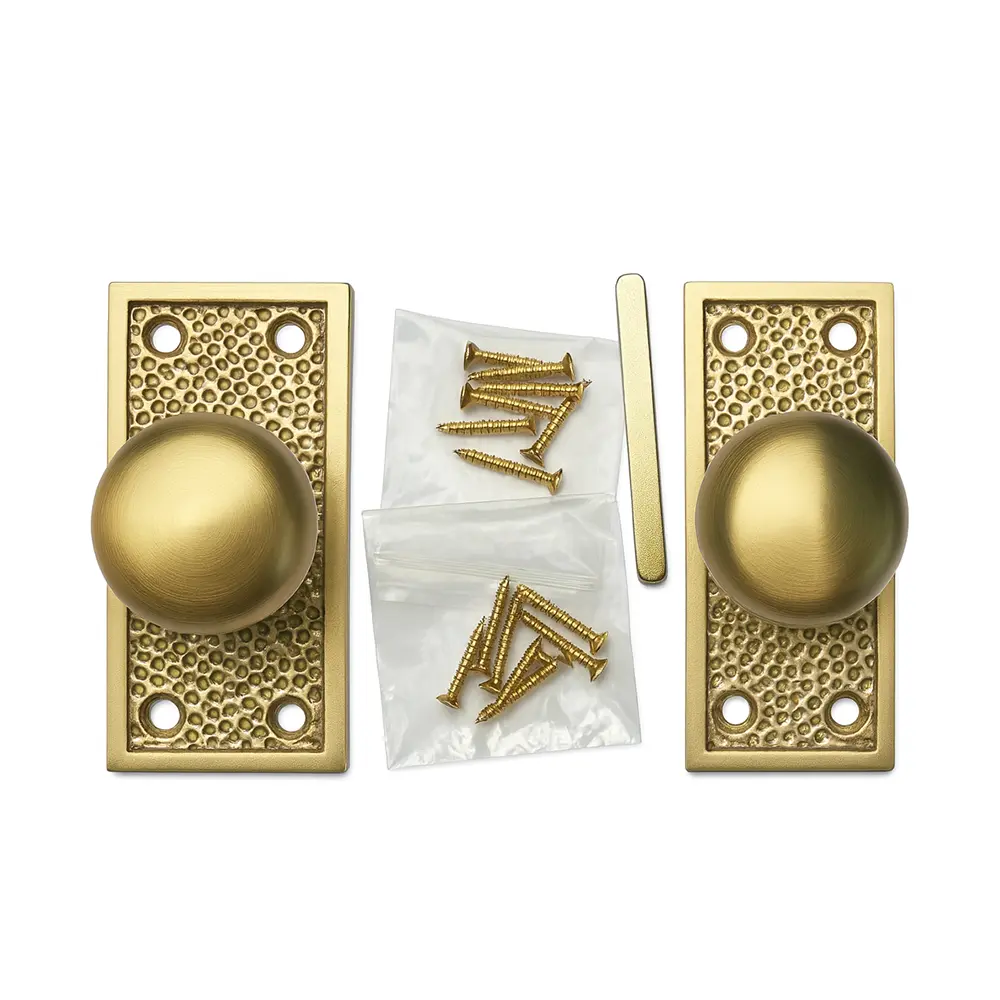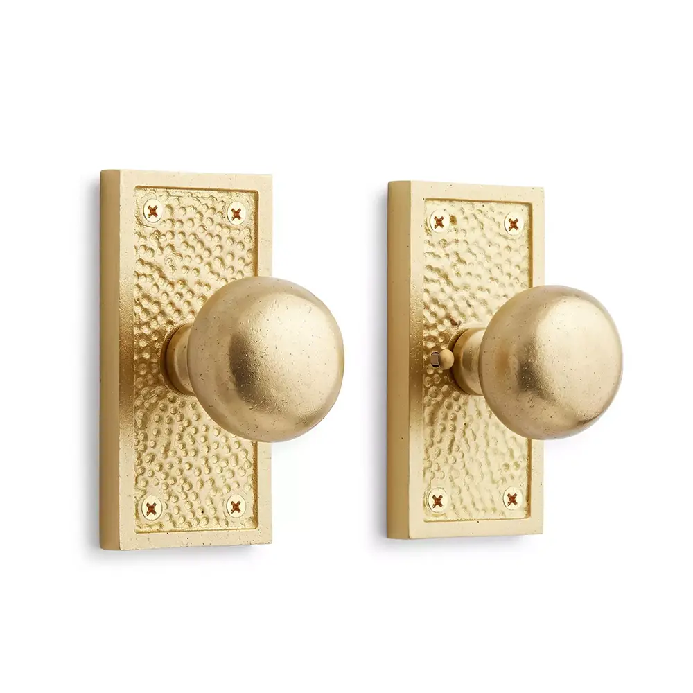 Fabricada en latón macizo, la cerradura dorada para puerta interior Traeger ofrece no solo durabilidad, sino también un acabado visual excepcional. Su diseño redondo con placa rectangular martillada añade textura y carácter, perfecta para decoraciones vintage, coloniales o rústicas modernas.