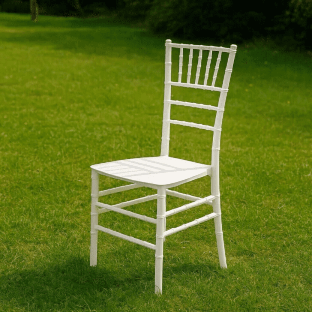 Fabricadas en resina de alta resistencia, estas sillas están diseñadas para soportar un uso constante sin comprometer su estructura. La resina es un material altamente valorado en mobiliario para eventos, ya que no se oxida, resiste la humedad y es fácil de limpiar, lo que las hace ideales tanto para interiores como exteriores.