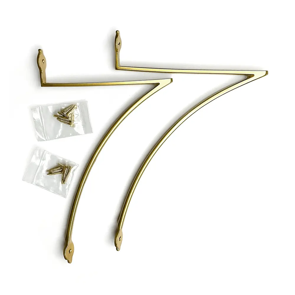 Diseñado para brindar un soporte robusto y visualmente impactante, este soporte de estante de latón macizo no solo sostiene con firmeza, sino que también decora. Su forma curva y estilizada añade un nivel decorativo que va más allá de la funcionalidad básica. Perfecto para salas, cocinas, baños o estudios.